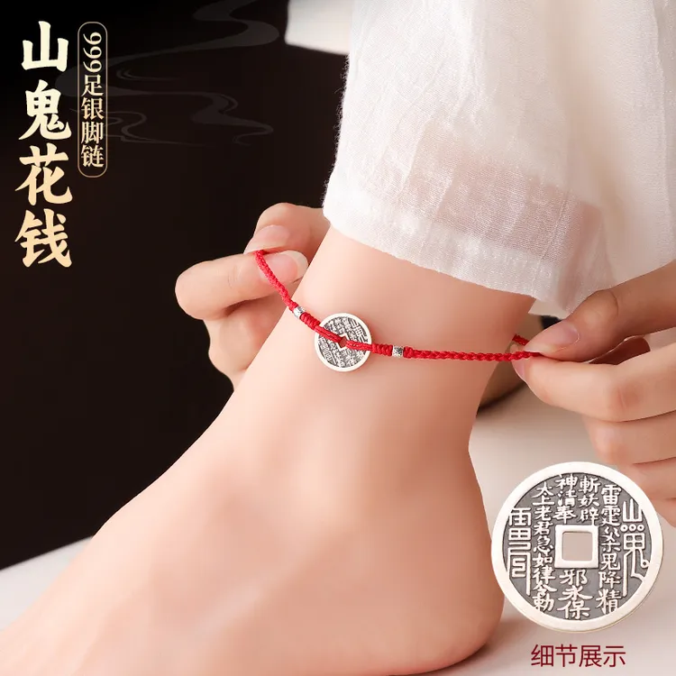 这条山鬼花钱红绳脚链,它的设计很特别,是由925银制成的,戴起来不会掉色,也不会生锈,无论是搭配休闲还是正式的服装都很合适。如果你也喜欢这种独特又有趣的饰品,就赶紧下单吧!#纯手工编绳 #饰品首饰 #脚链搭配 #山鬼花钱脚链 #山鬼花钱手绳